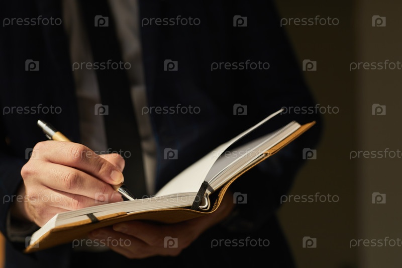 Бизнесмен пишет в планировщике Close Up