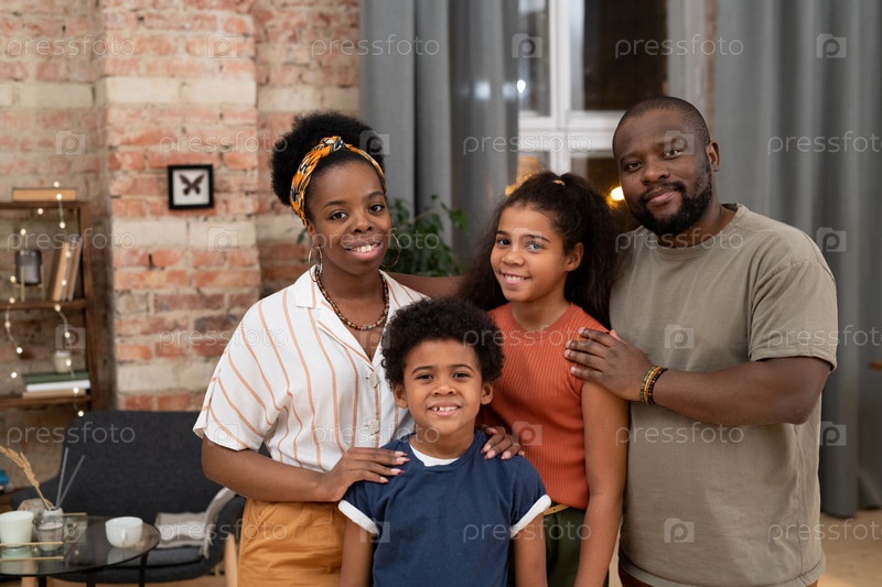 Счастливая молодая африканская пара и их милый любящий сын и дочь