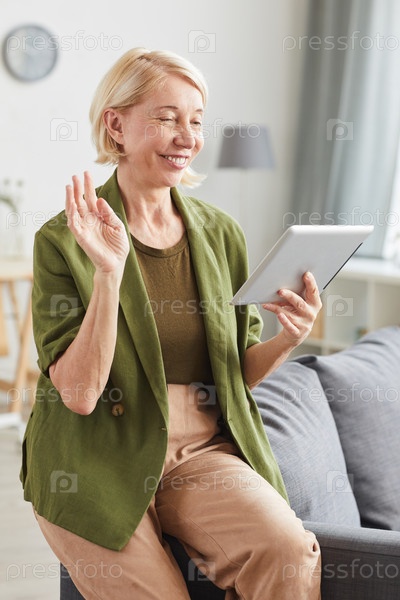 Женщина, разговаривающая онлайн с семьей