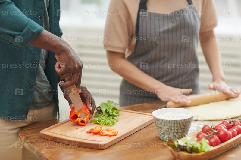 Пара готовит ужин вместе