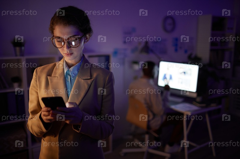 Женщина, использующая смартфон вечером