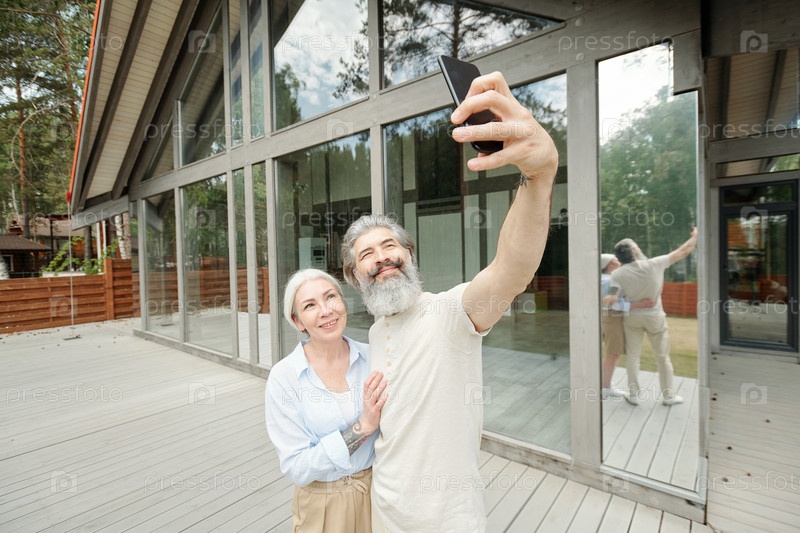 Пожилой мужчина делает селфи с женой