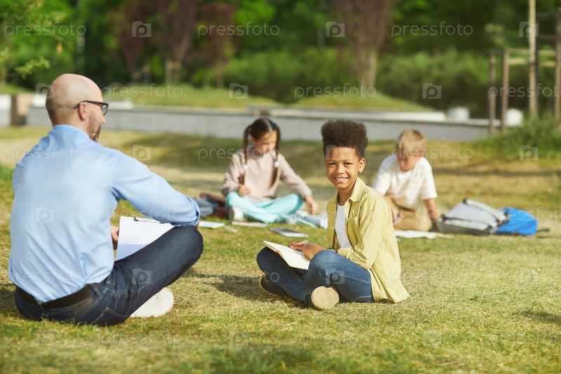 Улыбающийся африканский мальчик на уроке открытой школы
