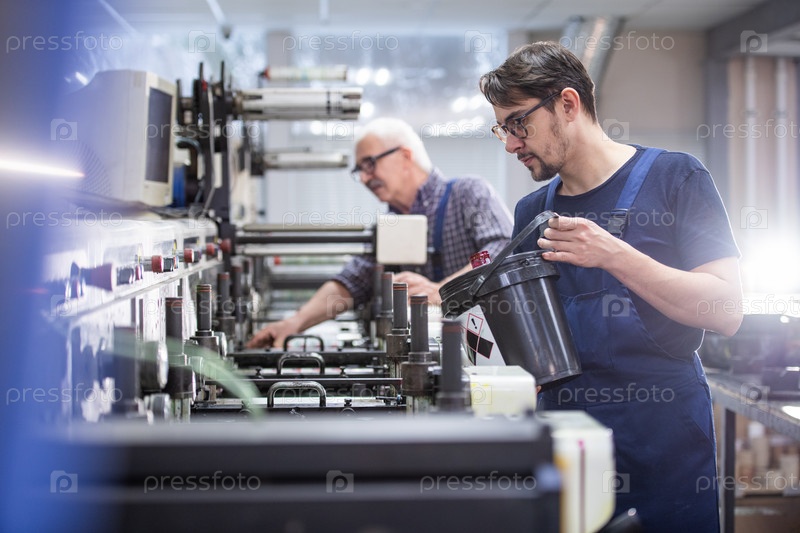 Добавление чернил в печатные станки на фабрике