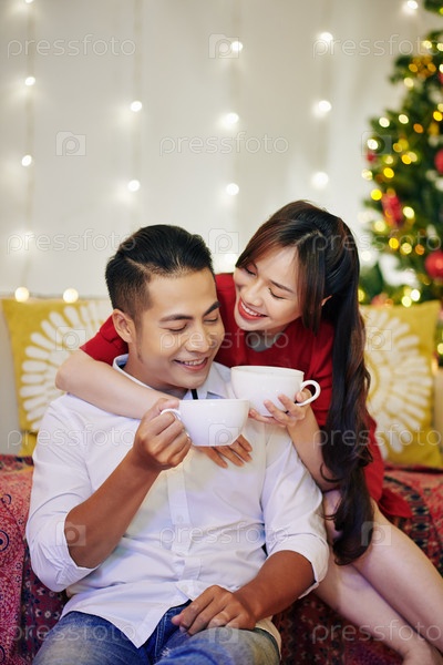 Пара наслаждается горячим шоколадом
