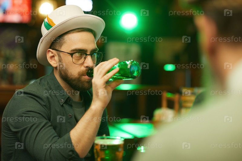 Мужчина пьет пиво из бутылки