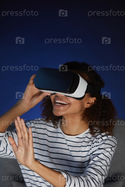Молодая женщина, наслаждающаяся африканским симулятором VR