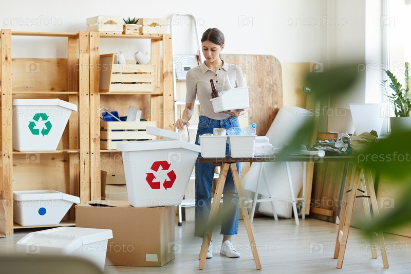 Женщина занимается переработкой на складе