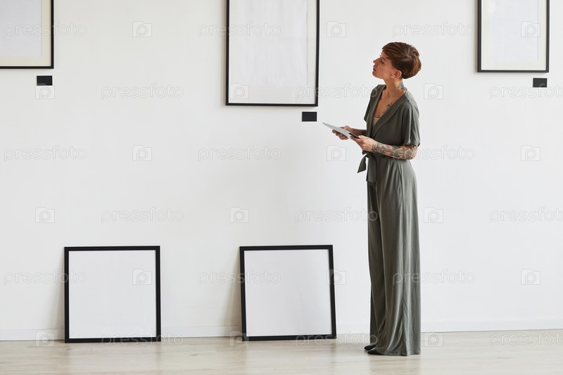 Молодая женщина планирует художественную галерею Creative