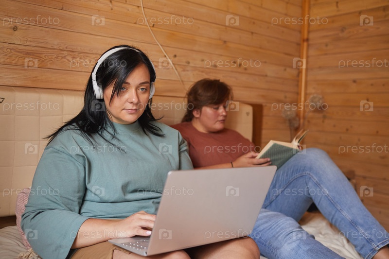 Женщина, использующая ноутбук дома