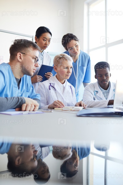 Группа врачей, использующих вместе ноутбук
