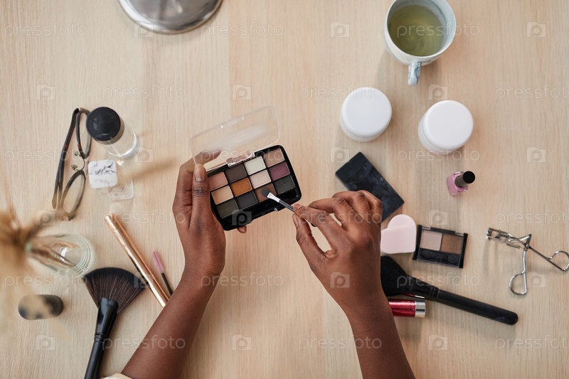 Афроамериканская женщина, делающая макияж Top View