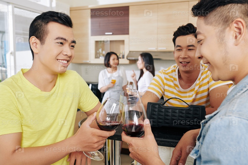 Друзья пьют вино на вечеринке