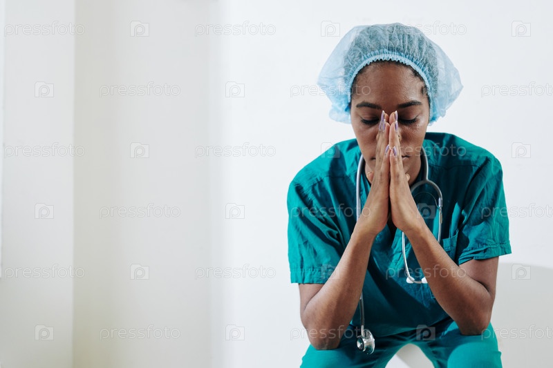 Медсестра молится за больных и страдающих людей