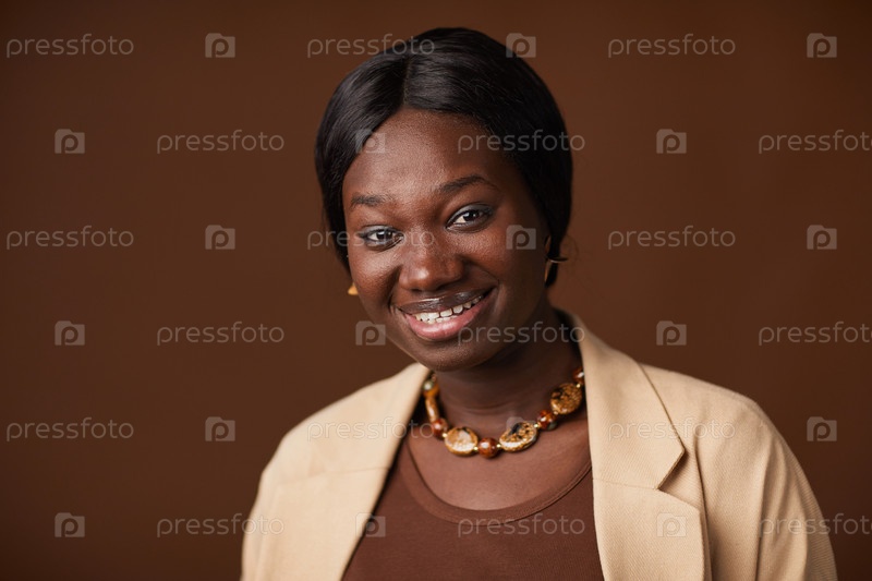 Улыбающаяся афроамериканская женщина позирует в студии