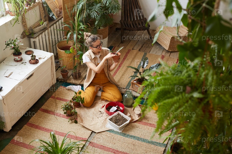 Женщина, работающая в цветочном саду