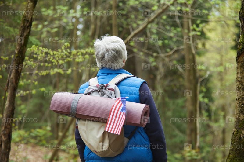 Старший рюкзаковод, путешествующий по лесу