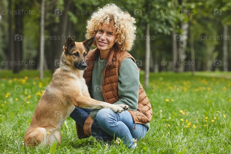 Женщина с собакой на открытом воздухе