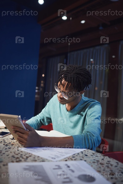Молодой африканский мужчина, работающий в темноте