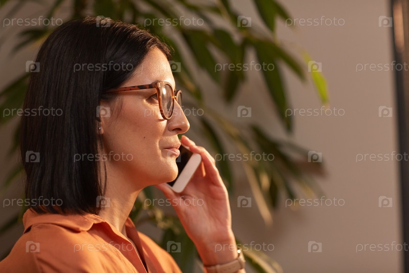 Современная деловая женщина, говорящая со смартфонами