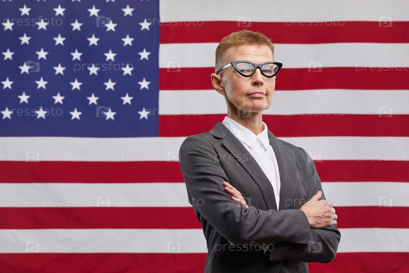 Зрелая женщина-лидер против американского флага