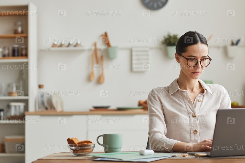 Молодая женщина, работающая в современном домашнем хозяйстве