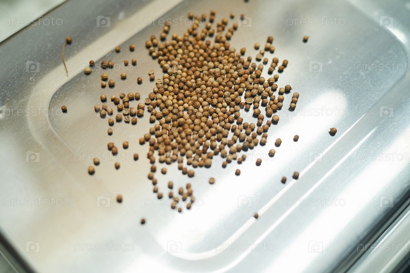 Семена в металлической подносе