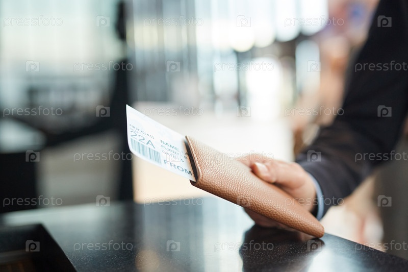 Рука, удерживающая паспорт и авиабилет