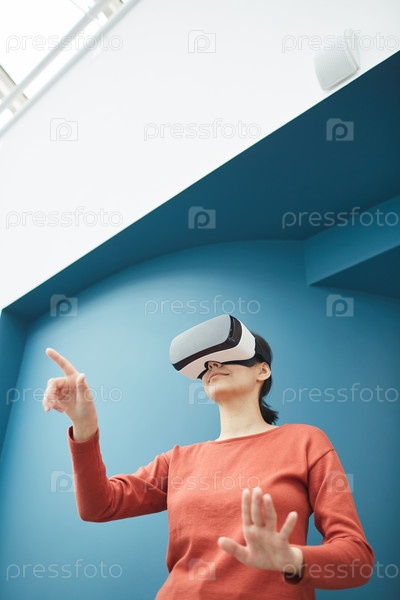 Женщина играет в виртуальную игру