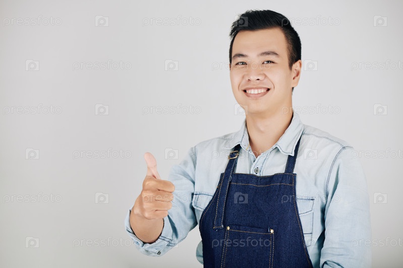Счастливый молодой владелец кофейни
