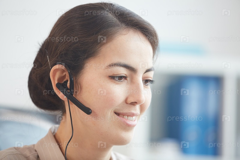 Улыбающаяся женщина-оператор в гарнитуре