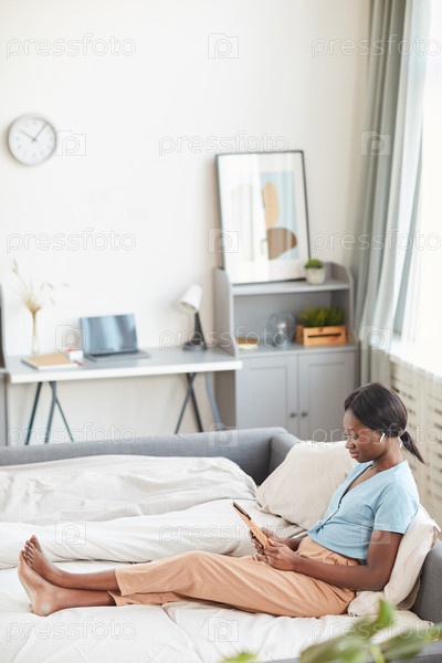 Молодая афроамериканская женщина отдыхает на кровати