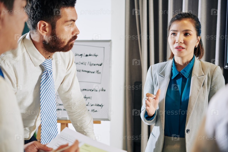 Деловая женщина разговаривает со своими коллегами