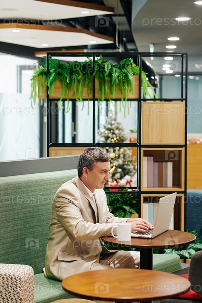 Бизнесмен, работающий в кафе