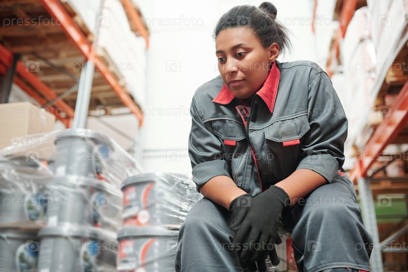 Молодая спокойная женщина-менеджер большого склада или хранилища гипермаркета