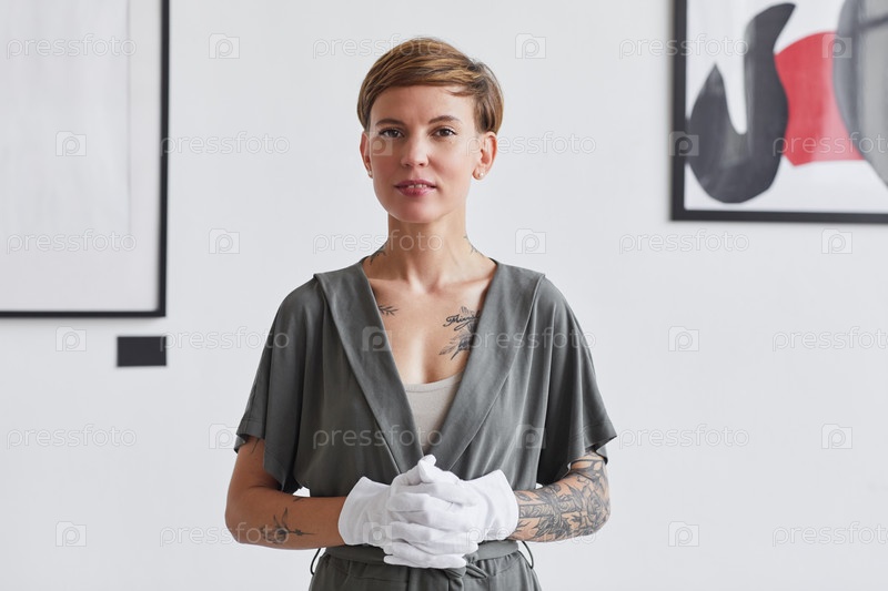 Женщина-эксперт в галерее современного искусства