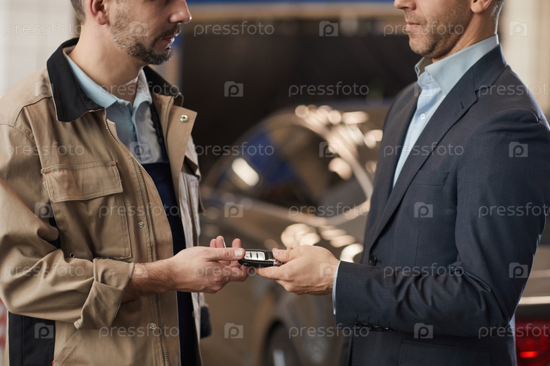 Работник отдает ключи от машины бизнесмену