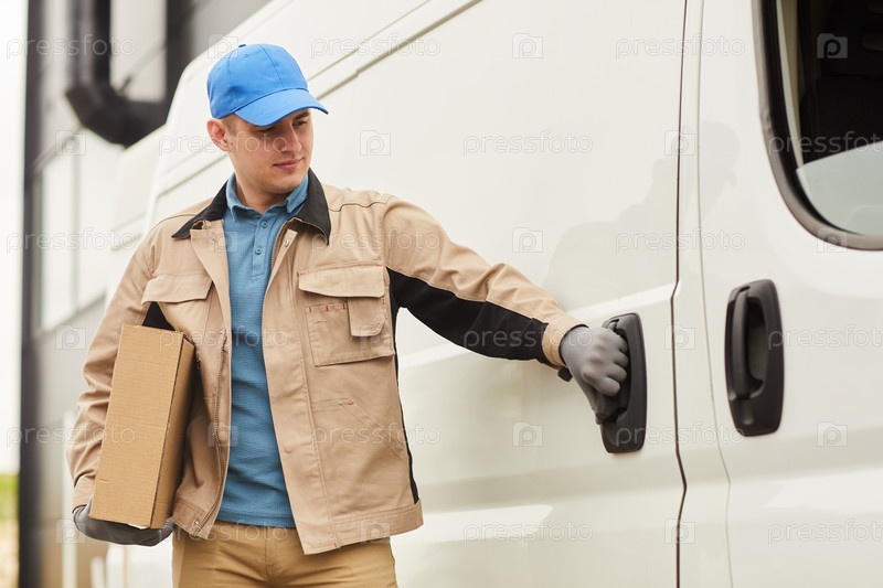 Человек, доставляющий посылки в фургоне