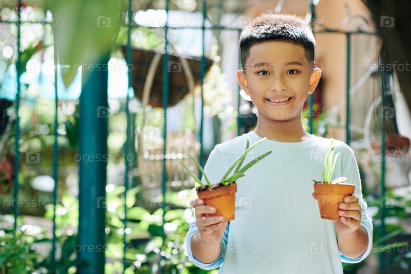 Мальчик сажает цветы