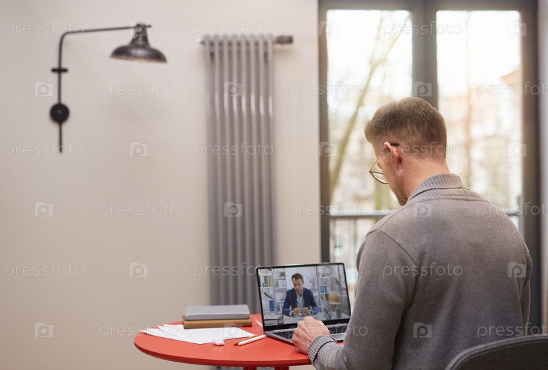 Бизнесмен в Онлайн-встреча на домашнем офисе