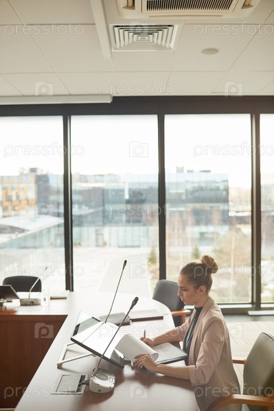 Деловая женщина, сидящая в конференц-зале