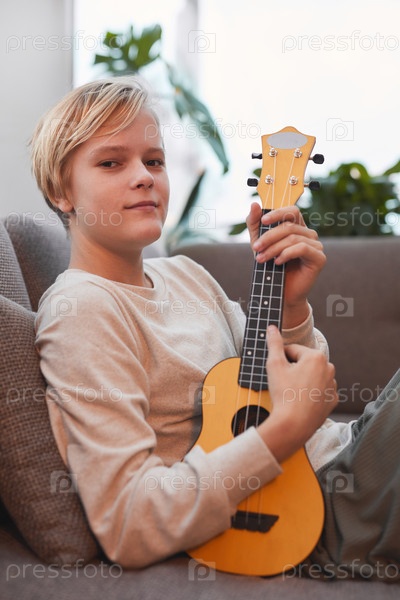 Мальчик-подросток играет на укуле