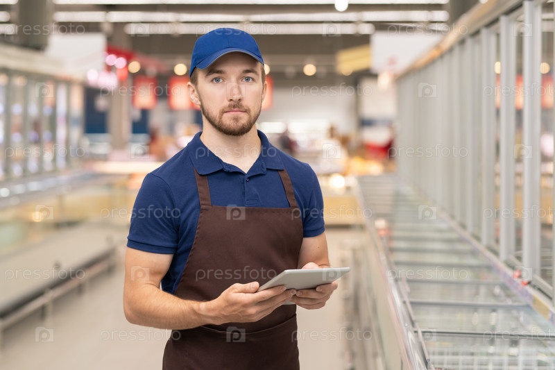 Уверенный мужчина, работающий в магазине