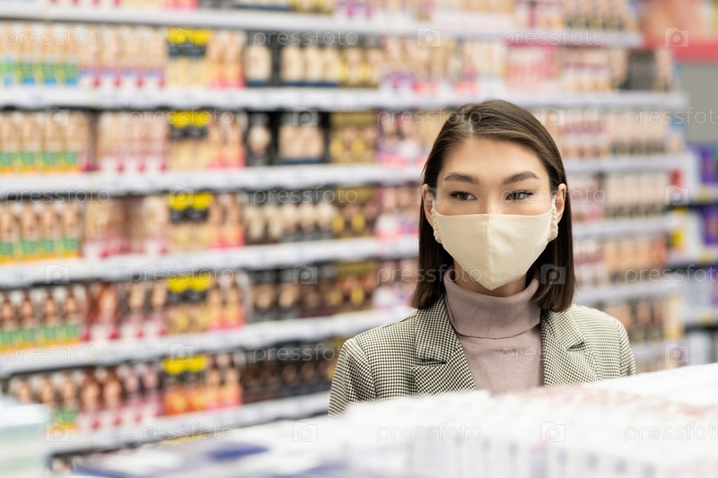 Блондинка-зрелая женщина в повседневной одежде и очках забирает свежий хлеб с дисплея