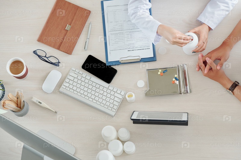 Врач, дающий пациенту рецептурные препараты