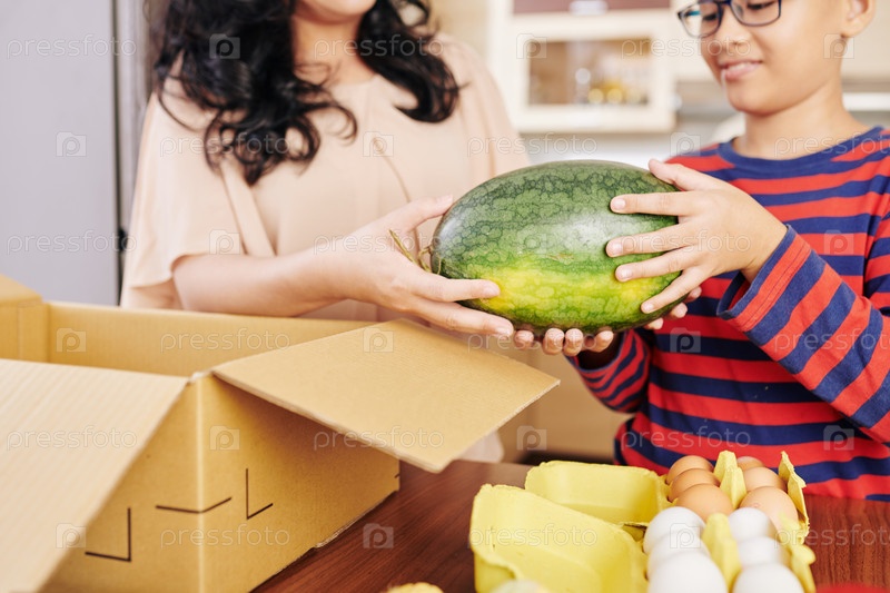 Семья распаковывает еду