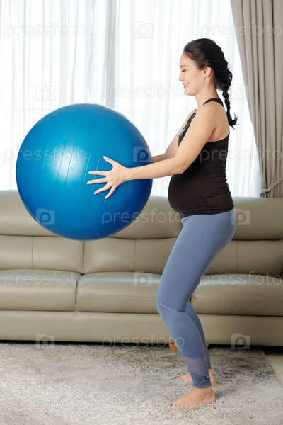 Беременная женщина делает приседания