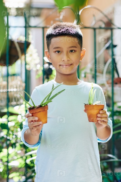 Мальчик наслаждается садоводством