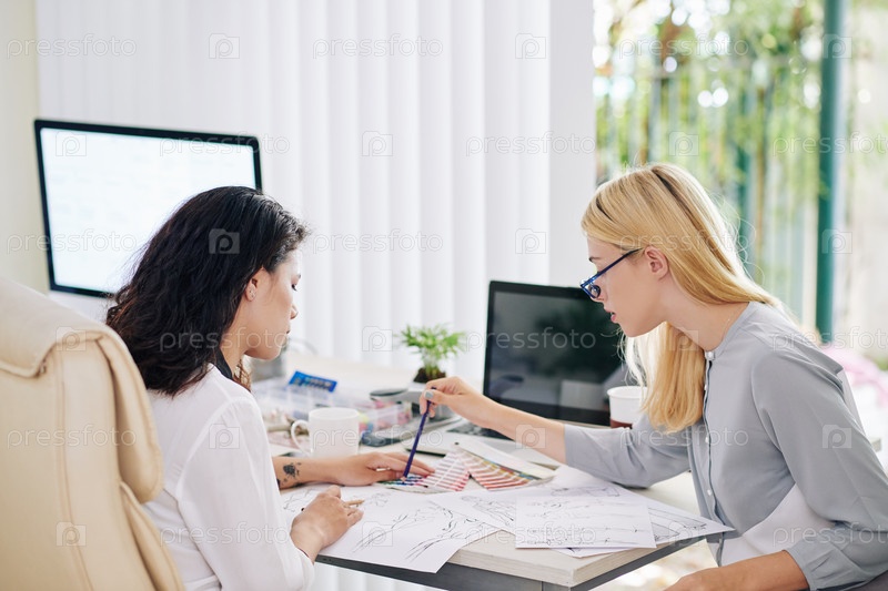 Коллеги обсуждают модные эскизы