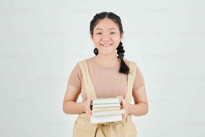 Ученица с кучей книг